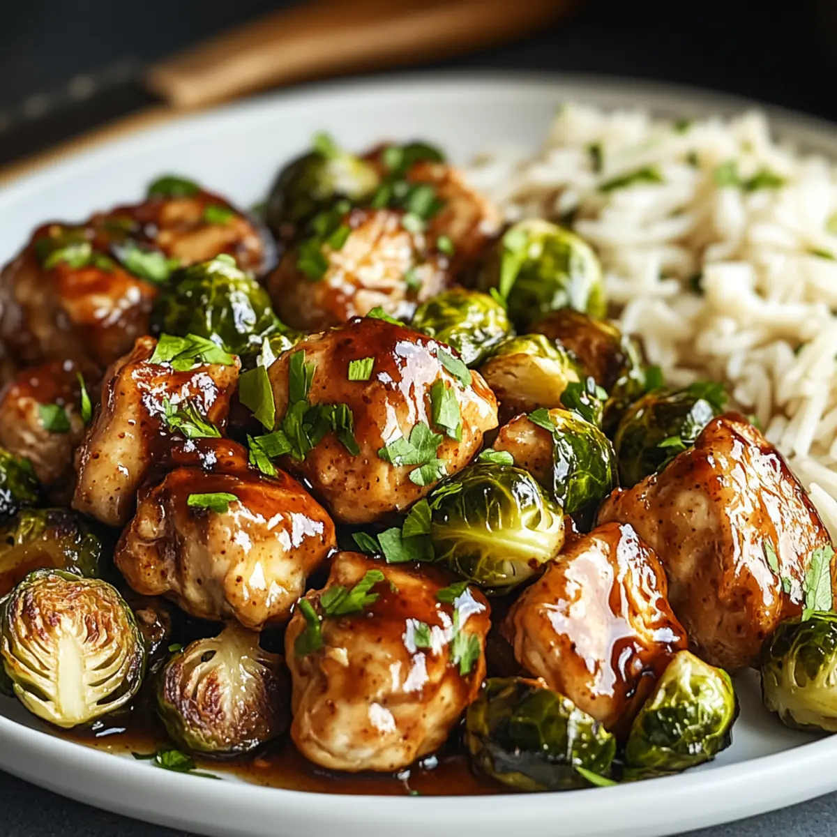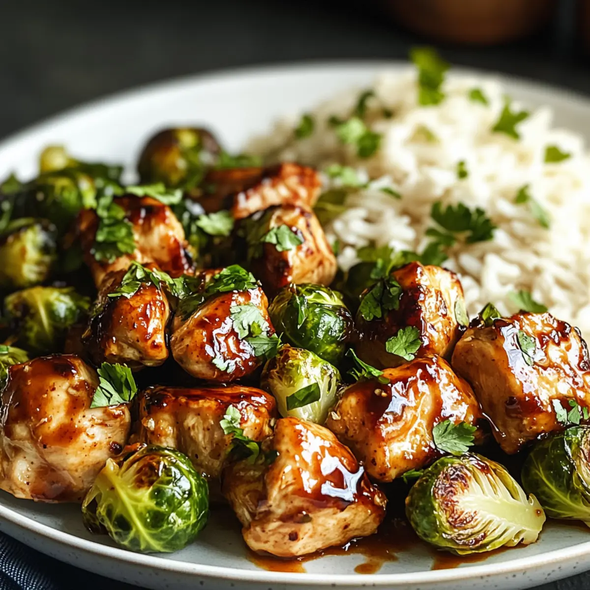 High in Protein: Featuring juicy chicken and nutritious Brussels sprouts, this dish delivers a healthy dose of protein for your day.