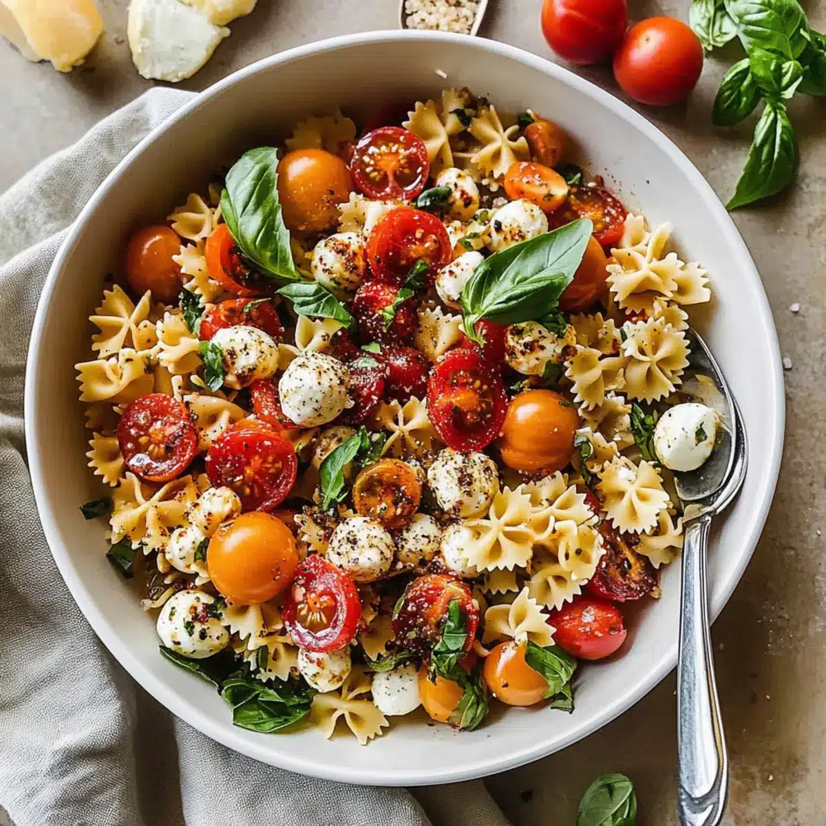 Yes! If you’re serving guests with dietary restrictions, you can easily adjust this Bruschetta Pasta Salad. Swap in gluten-free pasta for a gluten-free option or substitute the cheese with a dairy-free alternative. Always check with your guests for any allergies to ingredients. It’s a wonderful way to ensure everyone can enjoy this vibrant dish!