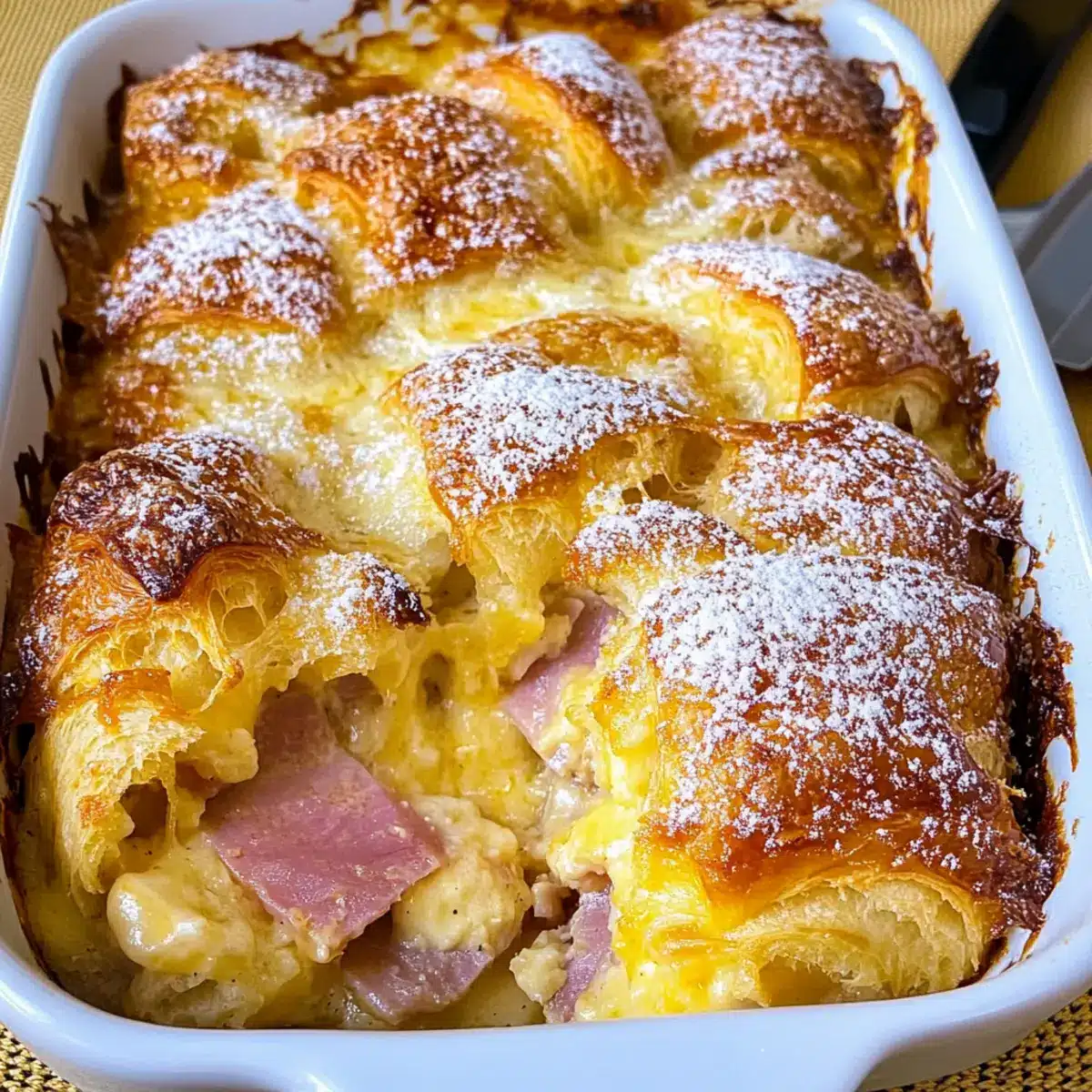 Decadent Ham and Cheese Croissant Breakfast Casserole Delight
