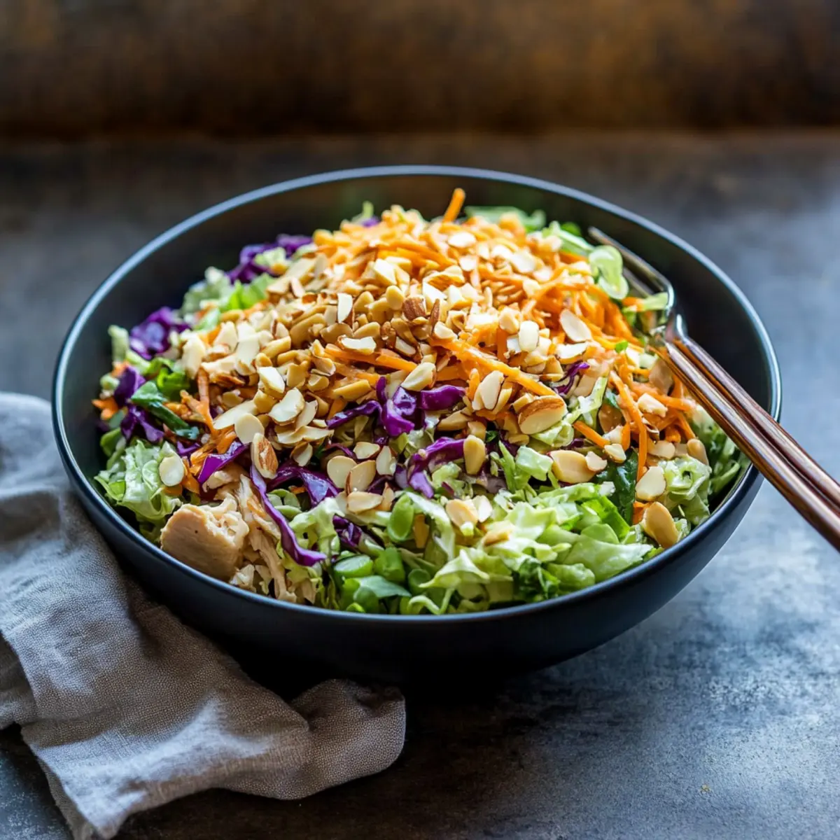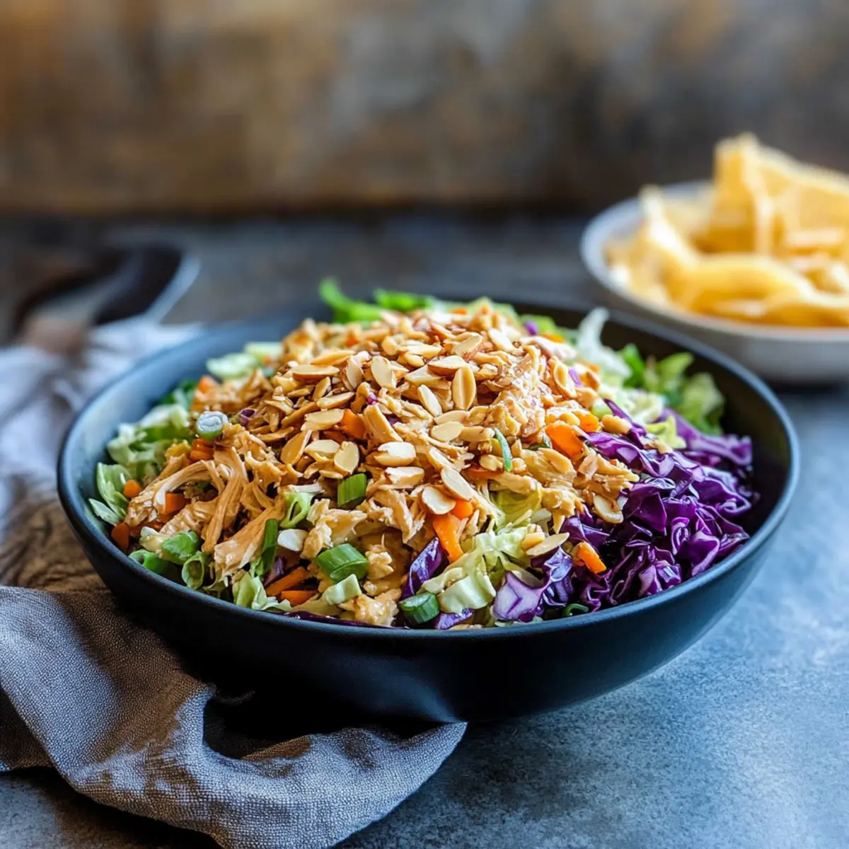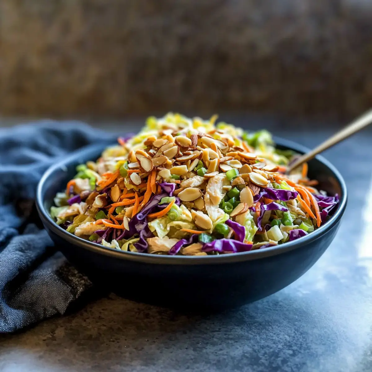 To keep your Chinese Chicken Salad fresh and crisp, serve it with the dressing on the side. Place the salad mixture in a large serving bowl and present the dressing in a small container alongside it. This way, guests can add as much or as little dressing as they like, maintaining the delightful crunch of the salad.