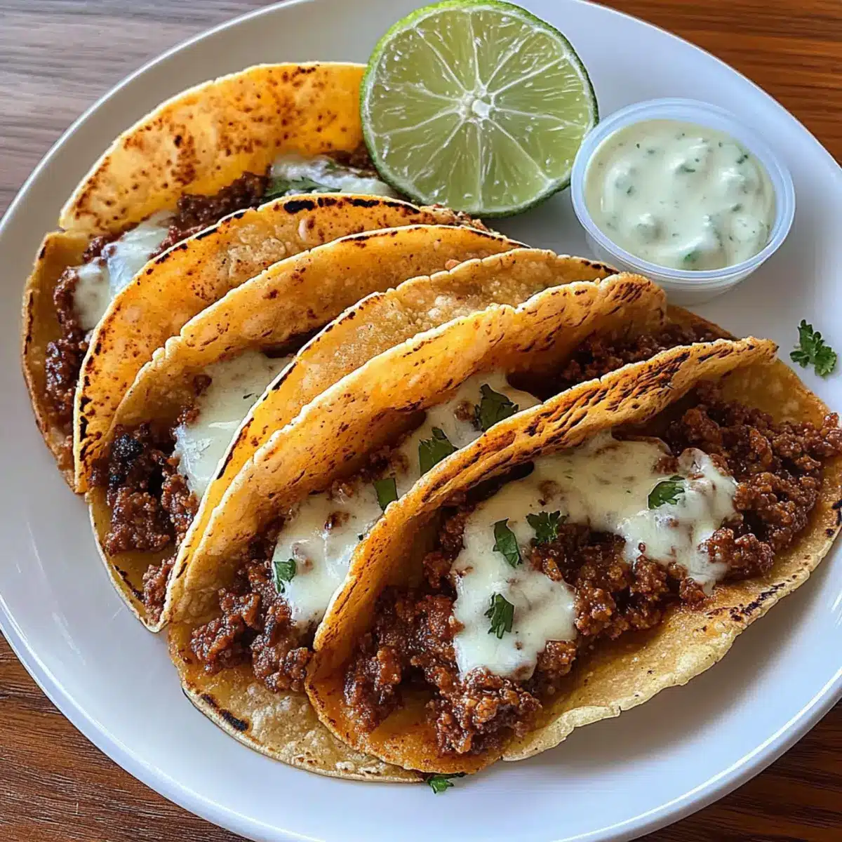 Once fried, garnish your Crispy Ground Beef Tacos with finely chopped fresh cilantro for a burst of flavor. Serve immediately while they’re hot and crispy, allowing everyone to enjoy this delightful meal right out of the skillet!