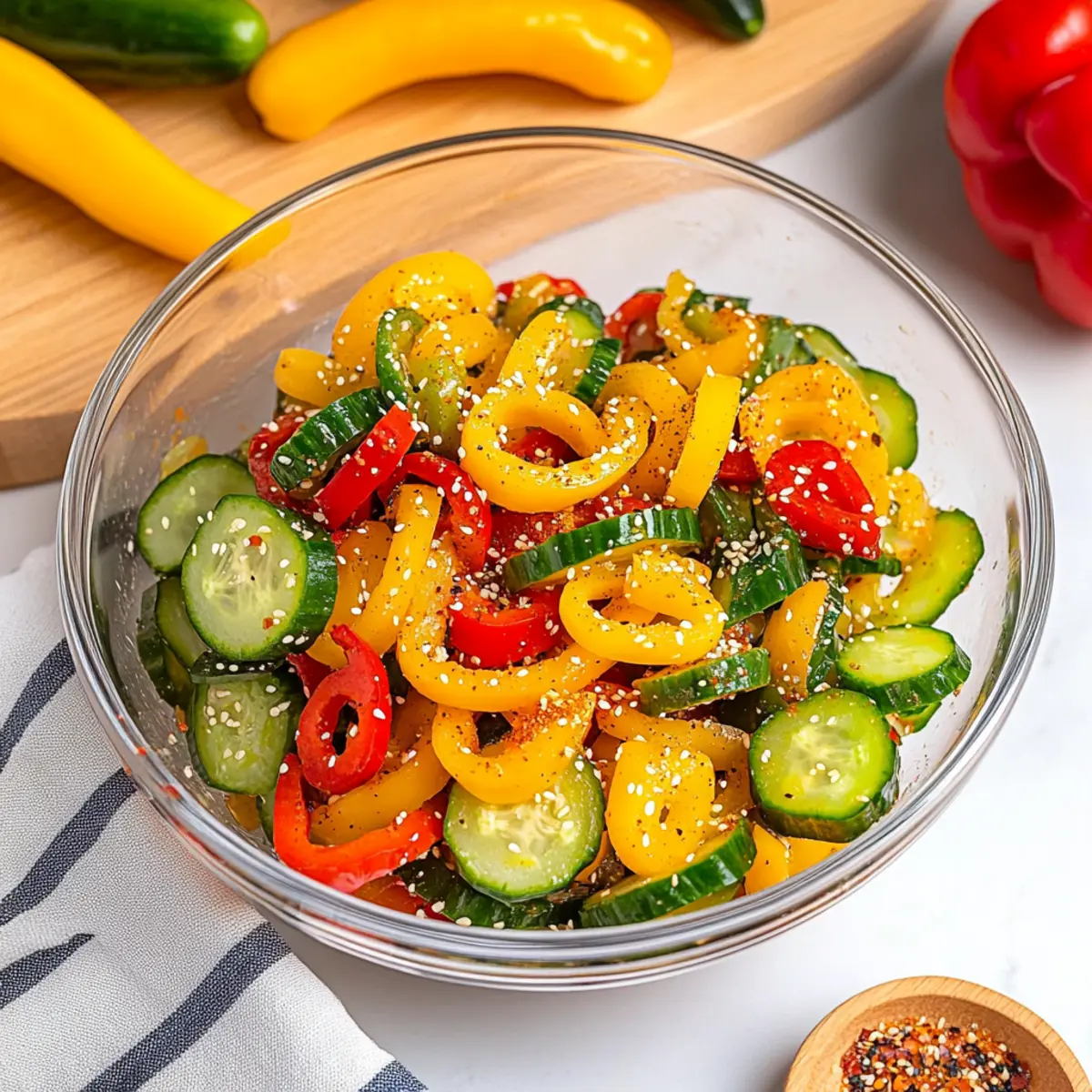 With the sun shining and a hint of summer in the air, I found myself searching for something light and rejuvenating to brighten up my lunch. That’s when I stumbled upon the vibrant Cucumber and Sweet Pepper Salad, a dish that screams fresh and tasty without requiring hours in the kitchen. This quick recipe is the perfect companion for anyone looking to whip up a satisfying meal in just 10-15 minutes! Not only is it vegan and gluten-free if you opt for gluten-free soy sauce, but it also showcases a delightful balance of crunchy cucumbers and sweet peppers, all enveloped in a zesty sesame ginger dressing. Whether you’re attending a picnic or want to add a colorful side to dinner, this salad is sure to impress. Ready to bring some crunch and zest into your day? Let’s dive into the recipe!