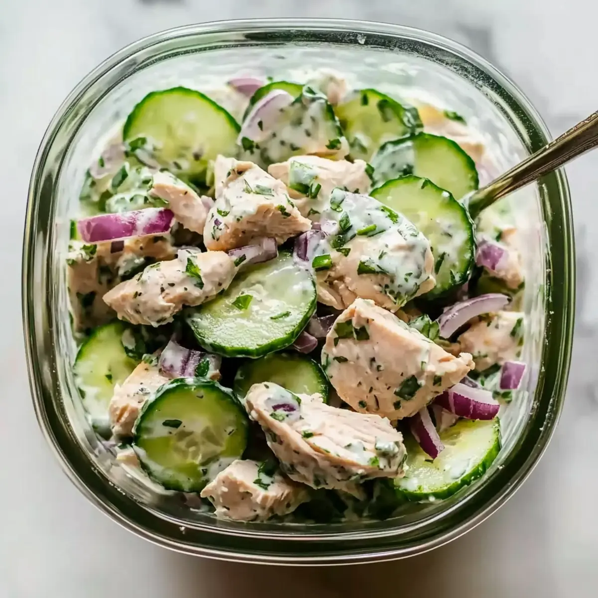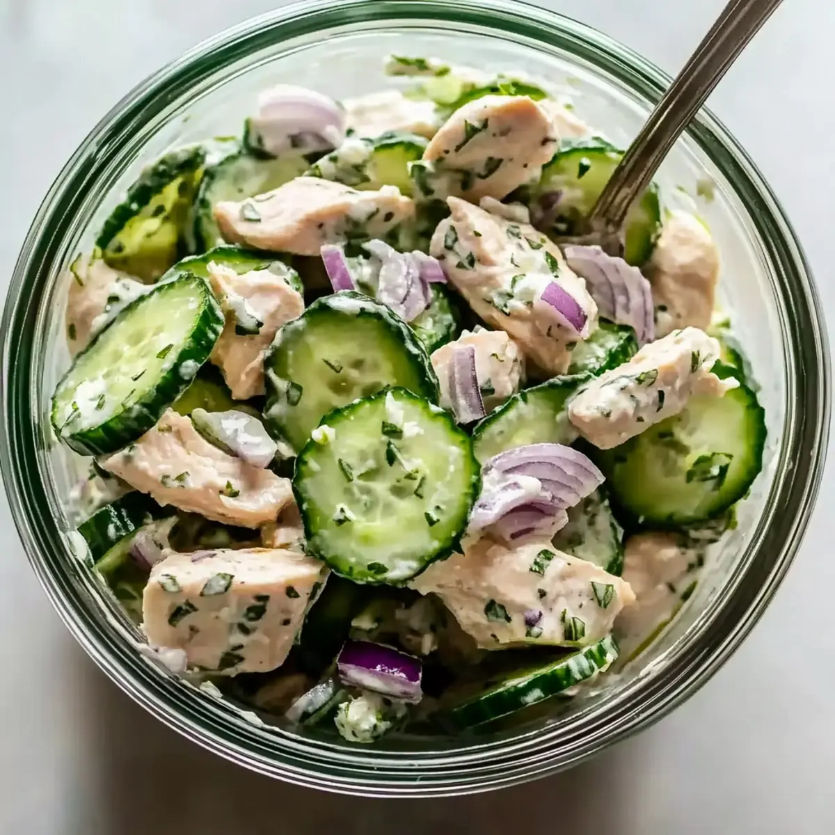 These High Protein Cucumber Salads are perfect for meal prep enthusiasts! You can slice and combine the cucumber, red onion, and cooked chicken breast up to 24 hours in advance, allowing the flavors to start mingling. However, to maintain the salad’s delightful crunch, it’s best to store the dressing separately in an airtight container until you’re ready to serve. Simply mix the Greek yogurt with the garlic, lemon juice, and olive oil, then refrigerate until needed. When you’re ready to enjoy your salad, combine all the components, and you’ll have a refreshing meal that’s just as delicious as when freshly made, saving you precious time on busy days!