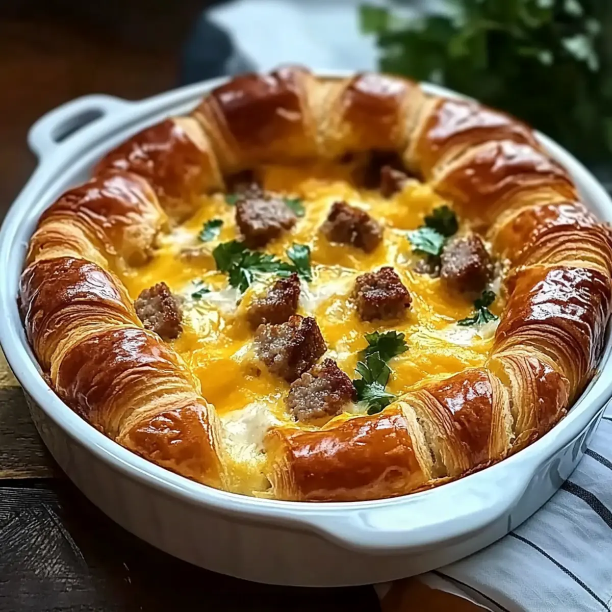 As I stood in my kitchen on a sleepy Sunday morning, the aroma of buttery croissants and savory sausage filled the air, instantly lifting my spirits. It was the perfect moment to whip up an Overnight Croissant Breakfast Casserole—a crowd-pleaser that transforms breakfast into a delightful experience. This make-ahead wonder is not only simple to prepare, allowing me to enjoy my time sipping coffee, but it’s also customizable, ensuring everyone can have their favorite twist. With its rich custard soaked into flaky croissants, this dish is ideal for busy weekdays or special family brunches alike. Are you ready to elevate your breakfast game? Let’s dive in!