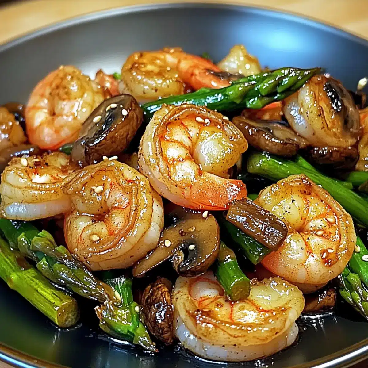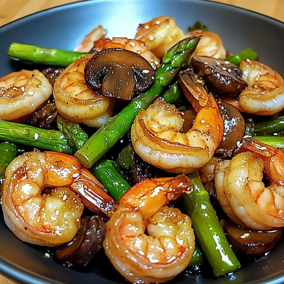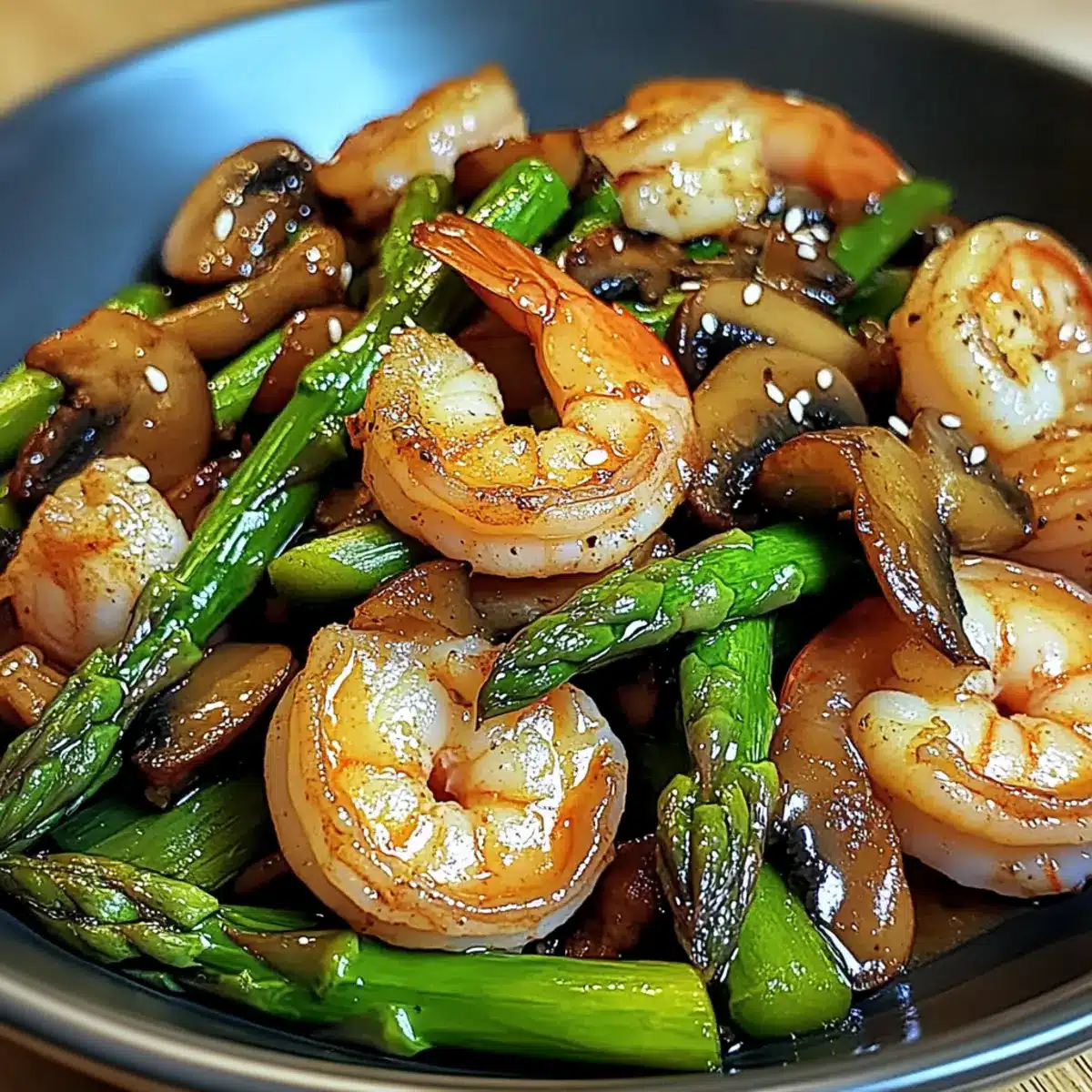 Yes! For gluten-free options, simply substitute regular soy sauce with tamari. All the other ingredients, including the shrimp, asparagus, and mushrooms, are naturally gluten-free, making this a healthy choice for those avoiding gluten.