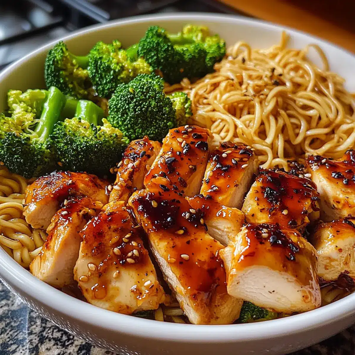 Finally, season the dish with salt and pepper to taste, mixing once more to evenly distribute the flavors. Serve the noodles hot, garnished with sesame seeds or chopped green onions for an extra layer of flavor and a stunning presentation. You’ve created a beautiful Spicy Garlic Chicken and Broccoli that’s sure to impress!