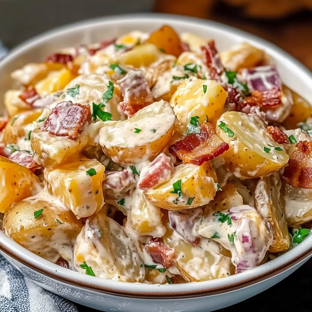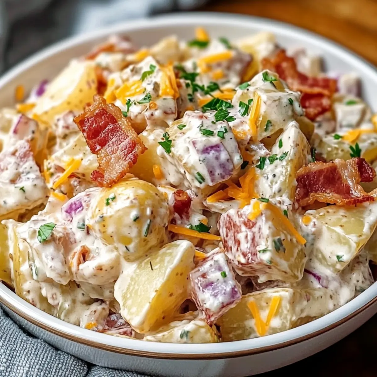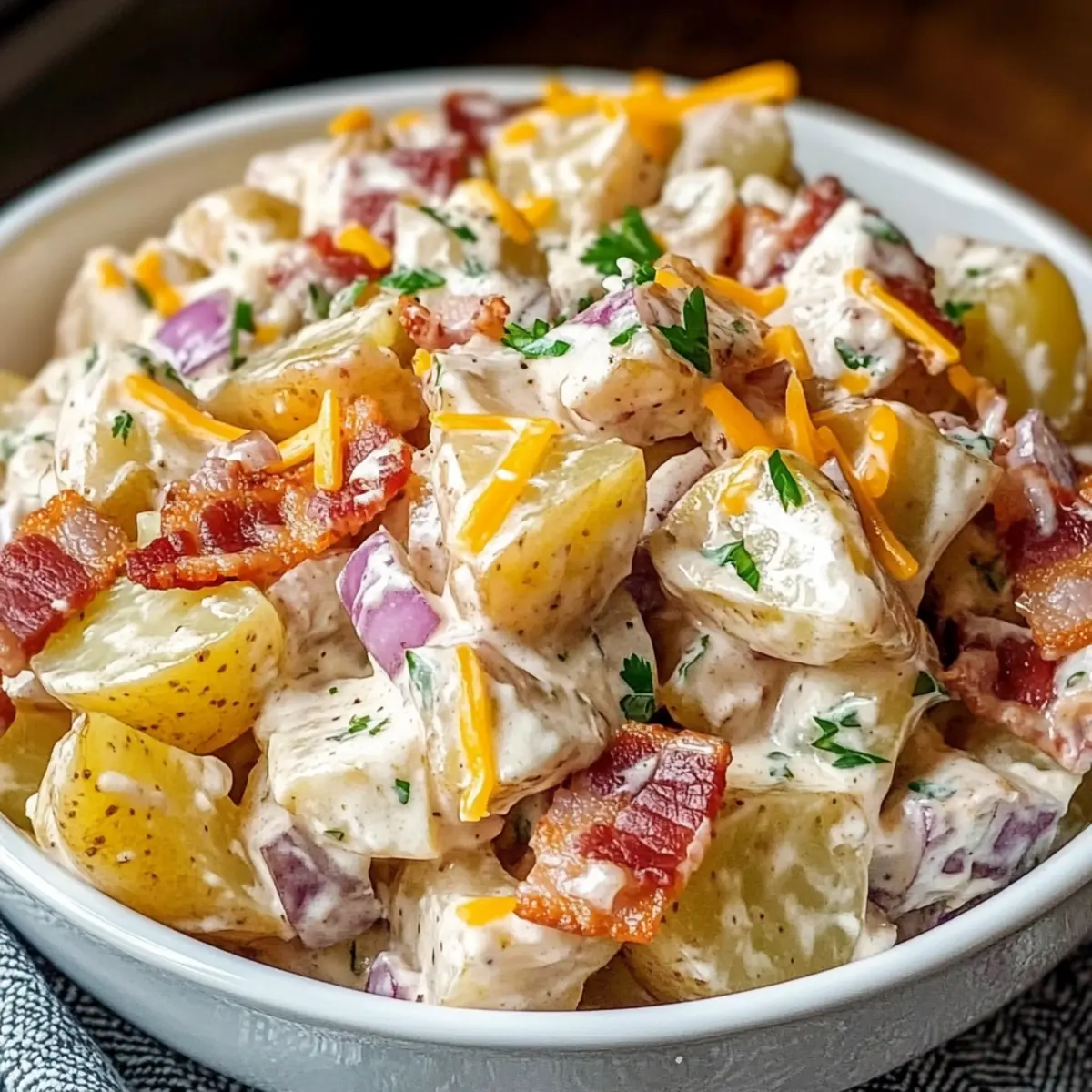Flavor-Packed Appeal: This potato salad combines tender red potatoes with crispy bacon and sharp cheddar, creating a dish that’s bursting with flavor at every bite.