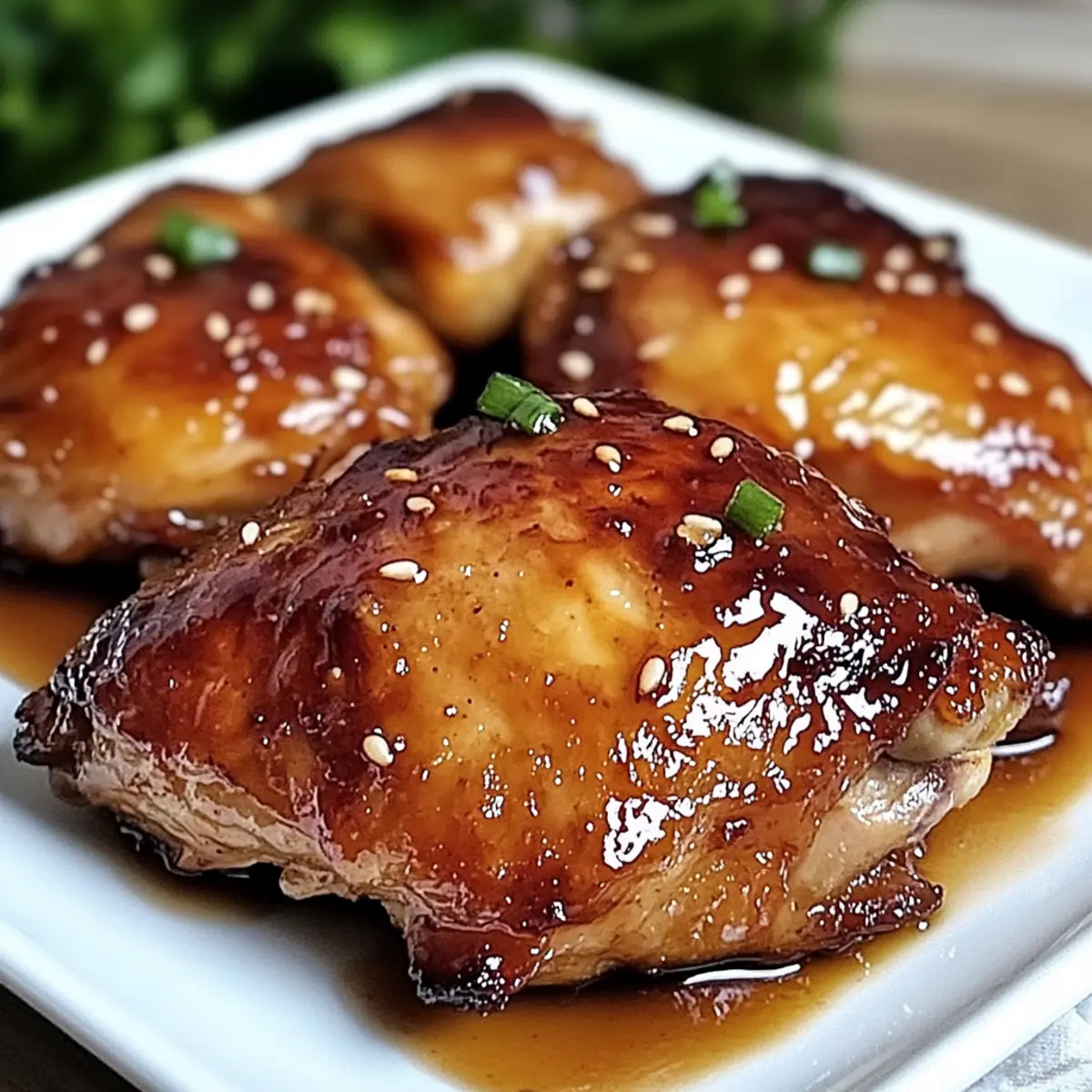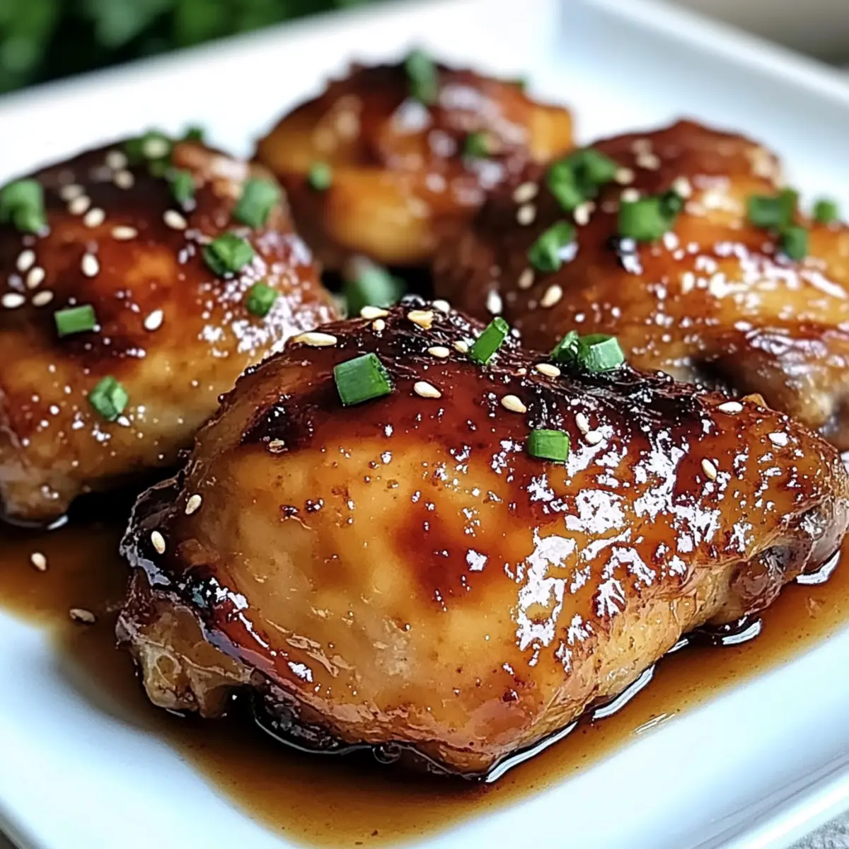 Once the chicken thighs are done baking, remove them from the oven and let them rest for about 5 minutes. This resting period allows the juices to redistribute, ensuring juicy meat. Before serving, sprinkle chopped parsley or green onions on top for a fresh, vibrant finish that adds color and brightness to your Sticky Baked Chicken Thighs!