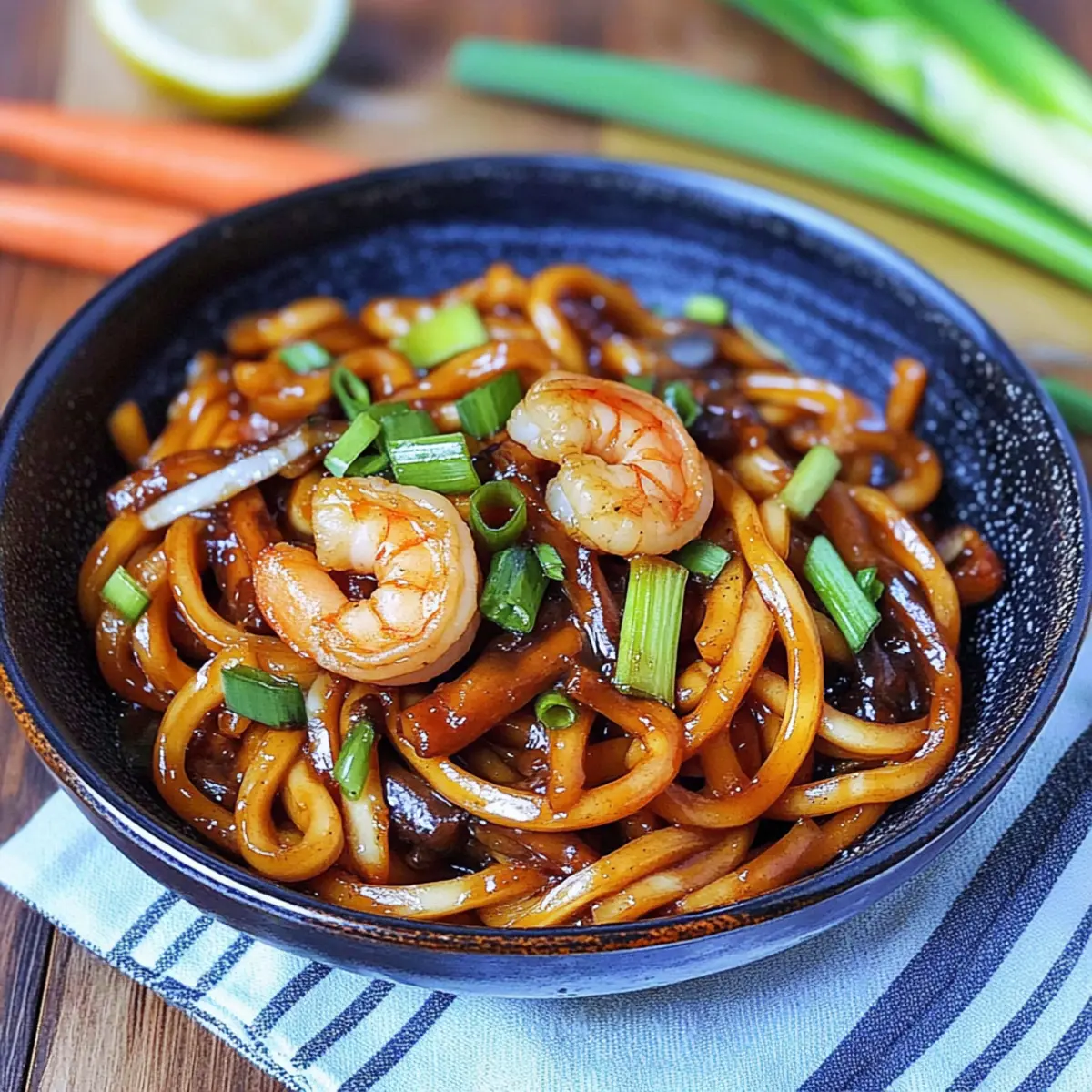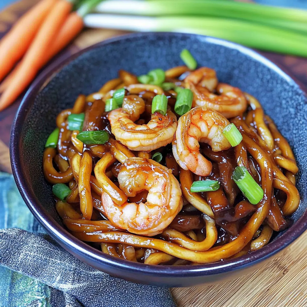 As the vibrant aromas of sizzling garlic and tender shrimp waft through the kitchen, I can’t help but feel transported to a bustling Japanese street market. You’d be amazed at how this Quick and Savory Yaki Udon with Shrimp captures the essence of comfort food in under 30 minutes. Imagine glossy, chewy udon noodles soaking up a flavorful stir-fry made with fresh veggies—it’s a quick meal that not only satisfies your taste buds but also lifts your spirits. Packed with protein and perfect for busy weeknights, this recipe is sure to become a beloved staple in your home. Are you ready to whip up a dish that is both gratifying and incredibly easy to prepare? Let’s dive into the delicious details!